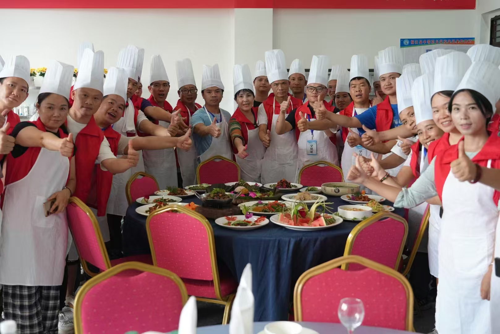 在众多培训项目中,“村超”美食烹饪师已成为榕江探索“体育+技能+文化”融合发展的创新样板。借助“村超”持续升温的热度,该县于8月23日开设为期30天的专项烹调培训班,将足球文化与本地风味深度融合。课程不仅教授创意厨艺、食品安全等专业知识,更鼓励学员融入苗族、侗族等民族特色元素,让每一道菜都承载“村超故事”。如今,大部分学员已成功入职本地餐饮企业,或自主创业开设“村超特色小吃店”,实现了从“技能学员”到“行业从业者”的身份转变,让“村超热度”真正转化为提升群众生活的“民生温度”。