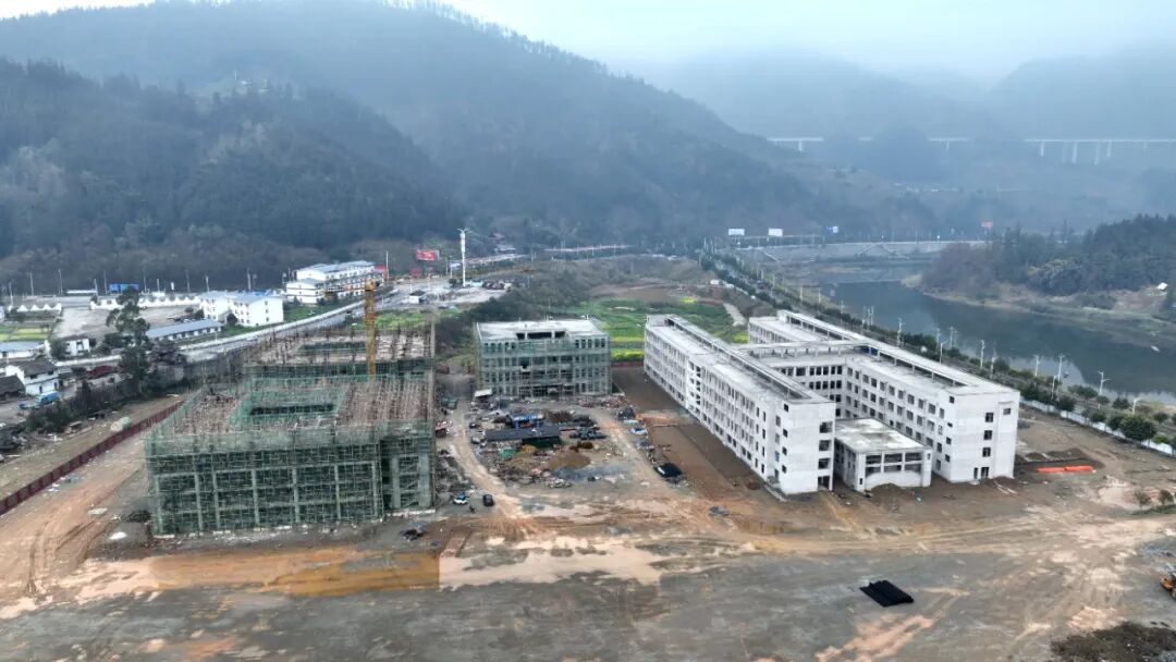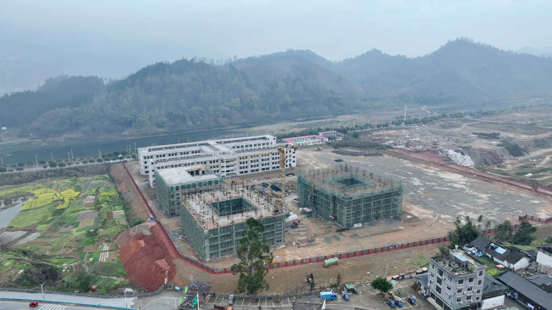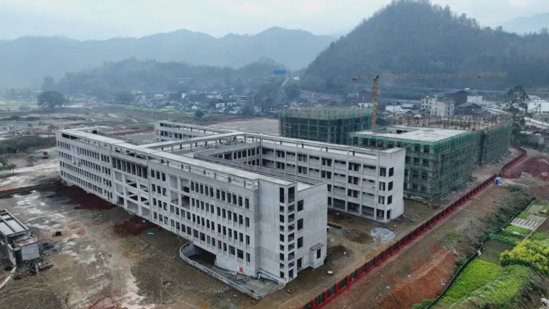 “预计到3月底,所有建筑将全面封顶。目前,1楼、2楼和3楼已开始进行内墙砌砖及二次结构施工。整个项目占地面积约44,000平方米,其中综合楼已进入内部装修阶段,预计7月可交付给甲方,用于教学准备工作,确保9月顺利开学。”榕江六中工地项目负责人薛文平介绍道。