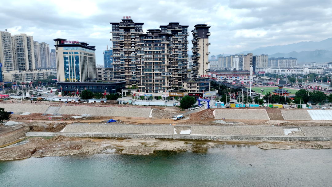与此同时,“村超”段防洪堤建设也在同步推进。目前,村超段项目工程已基本完工,而老桥头段项目工程正在快速建设中。