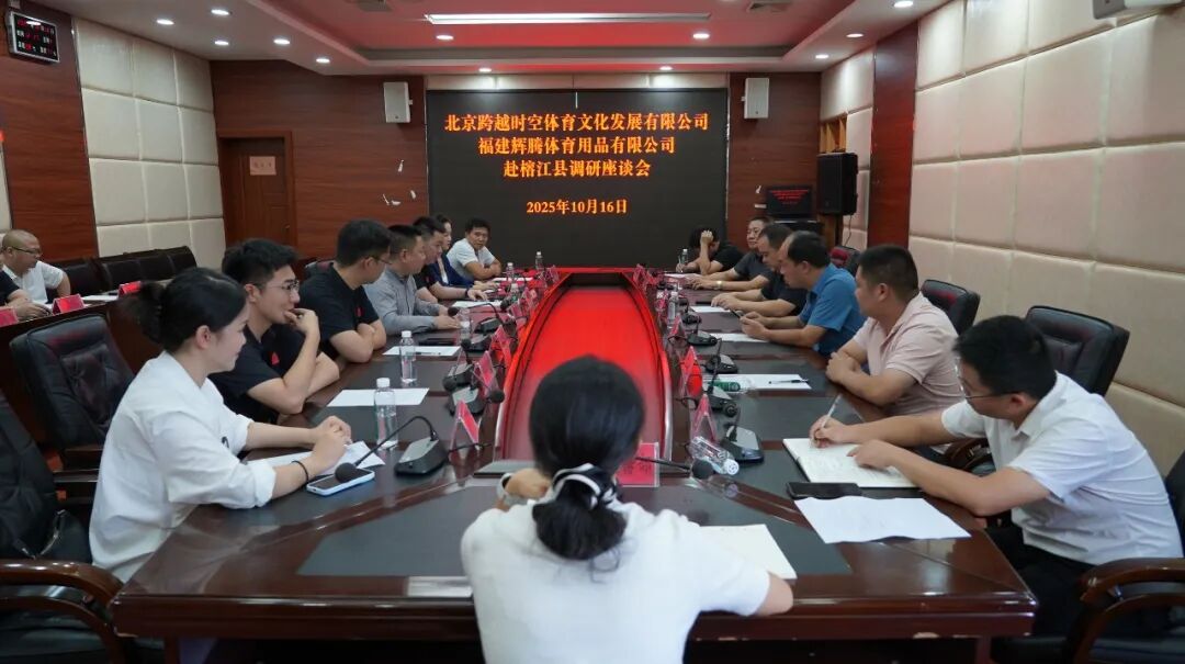 10月16日,北京跨越时空体育文化发展有限公司、福建辉腾体育用品有限公司赴榕江县调研并召开座谈会。三方围绕体育用品研发、供应链管理、特色体育赛事落地、打造体育康养线路进行了深入探讨。县委书记徐勃主持会议,北京跨越时空体育文化发展有限公司董事长、新长征赛创始人聂洋,福建辉腾体育用品有限公司董事长甘爽江、联合创始人杜逸文,相关县领导、县直有关部门负责人、企业代表参加会议。