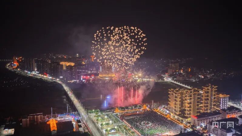 “村超村晚”活动现场的烟花表演(央广网发 王炳瑞 摄)