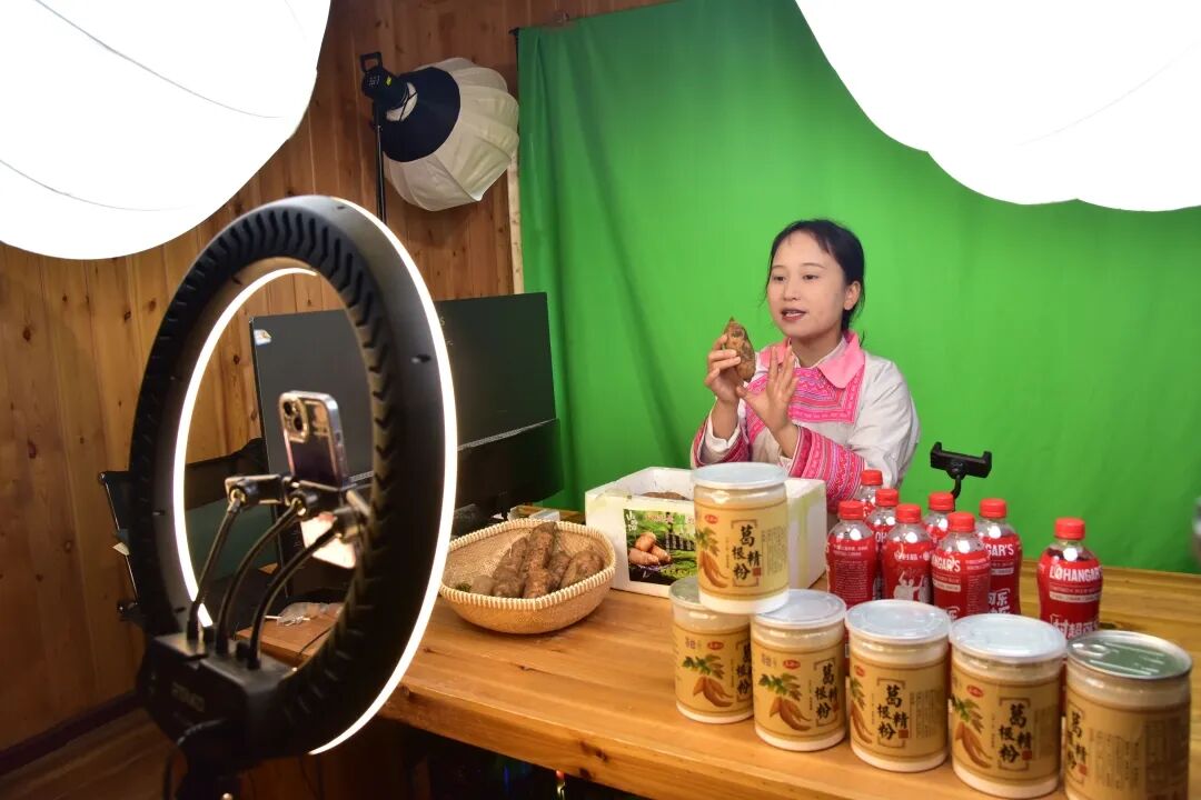 图为:2023年10月31日,榕江村民借“村超”东风,化身为带货主播,以数字赋能助力乡村产业振兴。(贵州日报天眼新闻记者 杨涛 摄)