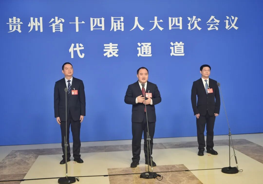 图为:1月27日上午,在省十四届人大四次会议“代表通道”上,省人大代表、榕江县委书记徐勃接受媒体记者的采访(贵州日报天眼新闻记者 龙永 摄)
