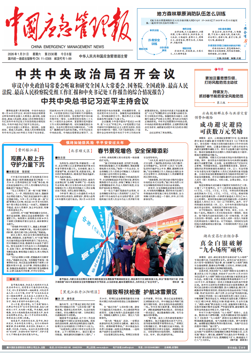 “马上又到周末了,新一轮‘村超’联赛又将举行。人一多,风险防控压力就大,隐患排查必须赶在前头。”榕江县应急救援中心副主任周超介绍。今年1月1日开始,新一届“村超”联赛正式打响,榕江县100多支村级球队每个周末都会在球场上一决高下。而随着春节临近,返乡人员增多,加上学生放假,观赛人数将直线上升。