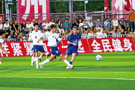 在榕江县“村超”球场,贵州开放大学与巴西银河联队的足球友谊赛火热上演,为现场观众带来了一场充满激情与活力的足球盛宴_韦贵金 摄(影像贵州)