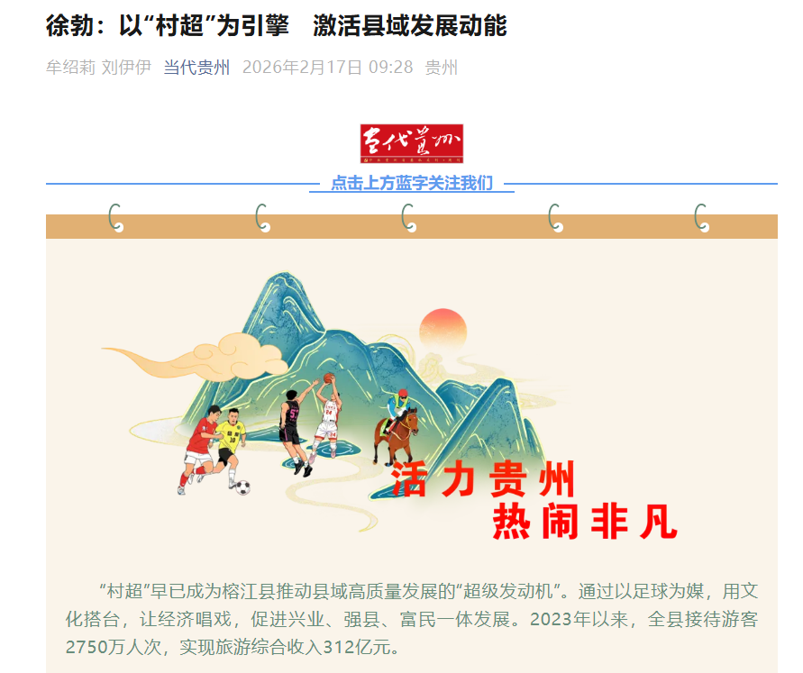 “村超”早已成为榕江县推动县域高质量发展的“超级发动机”。通过以足球为媒,用文化搭台,让经济唱戏,促进兴业、强县、富民一体发展。2023年以来,全县接待游客2750万人次,实现旅游综合收入312亿元。