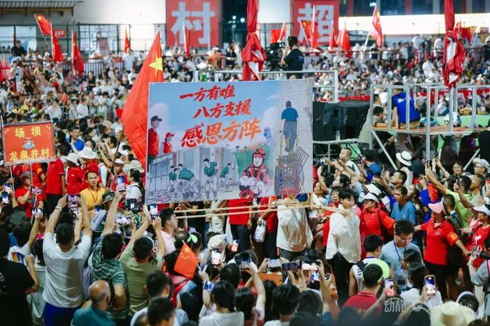 但榕江人没有等。清淤只能靠人工,就昼夜轮班;资金短缺,就争分夺秒向上申报。在各方支援下,救援力量迅速集结,全国各地的爱心力量纷纷伸出援手,上演了一幕幕暖心故事。一个月后,7月26日,“村超”灾后重启感恩专场如期举行,球场重新点亮,涌入18万人的街头直到凌晨4点依然灯火通明。