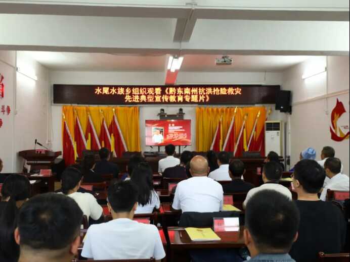 9月25日,水尾水族乡组织全乡人大代表、党员干部、各村“两委”成员及群众代表集中观看《黔东南州抗洪抢险救灾先进典型宣传教育专题片》,通过鲜活的先进事迹激发责任担当,以实际行动践行初心使命。