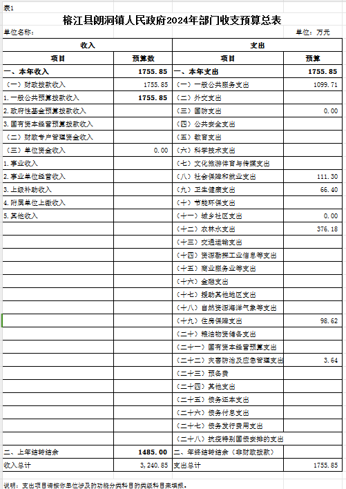 (一)榕江县朗洞镇人民政府2024年度部门收支预算总表