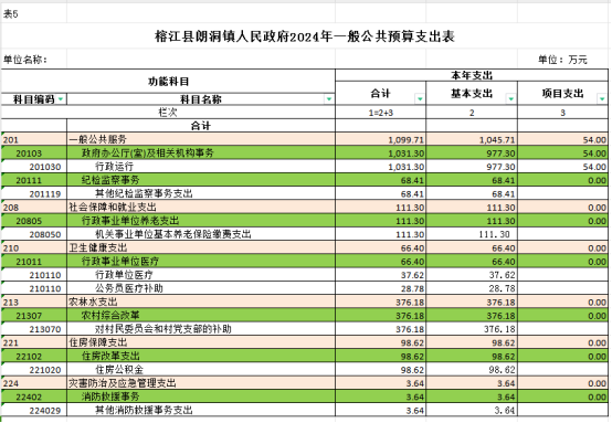 (五)榕江县朗洞镇人民政府2024年一般公共预算支出表