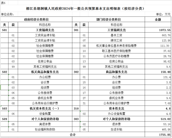 (六)榕江县朗洞镇人民政府2024年一般公共预算基本支出明细表(按经济分类)