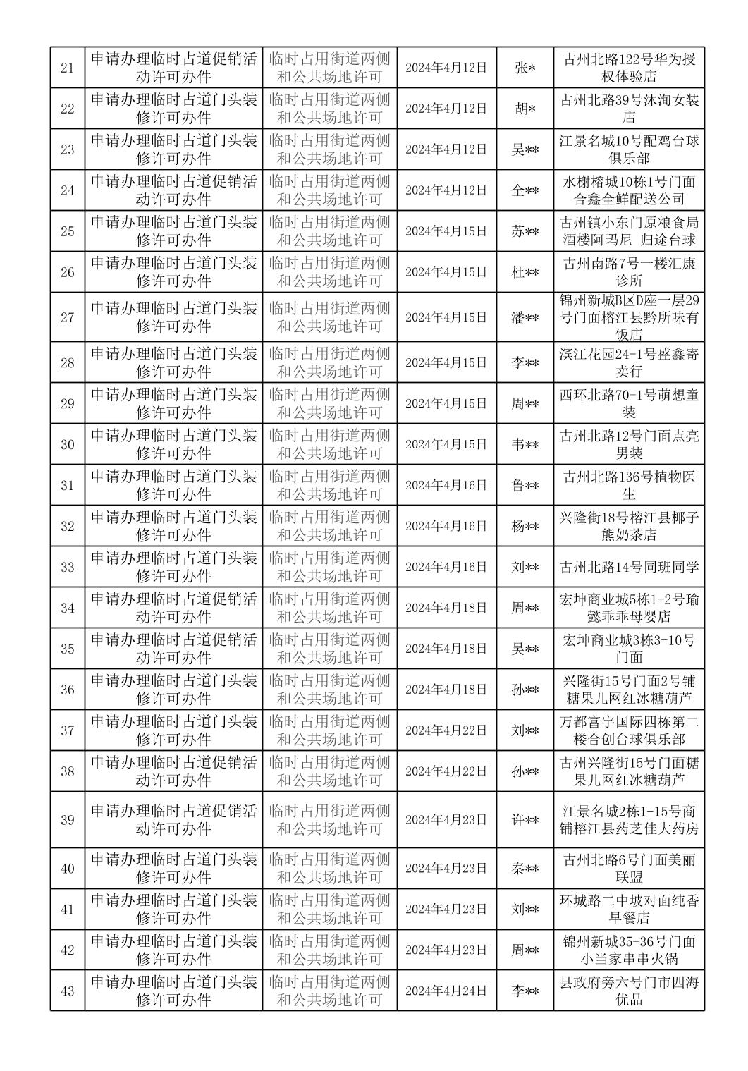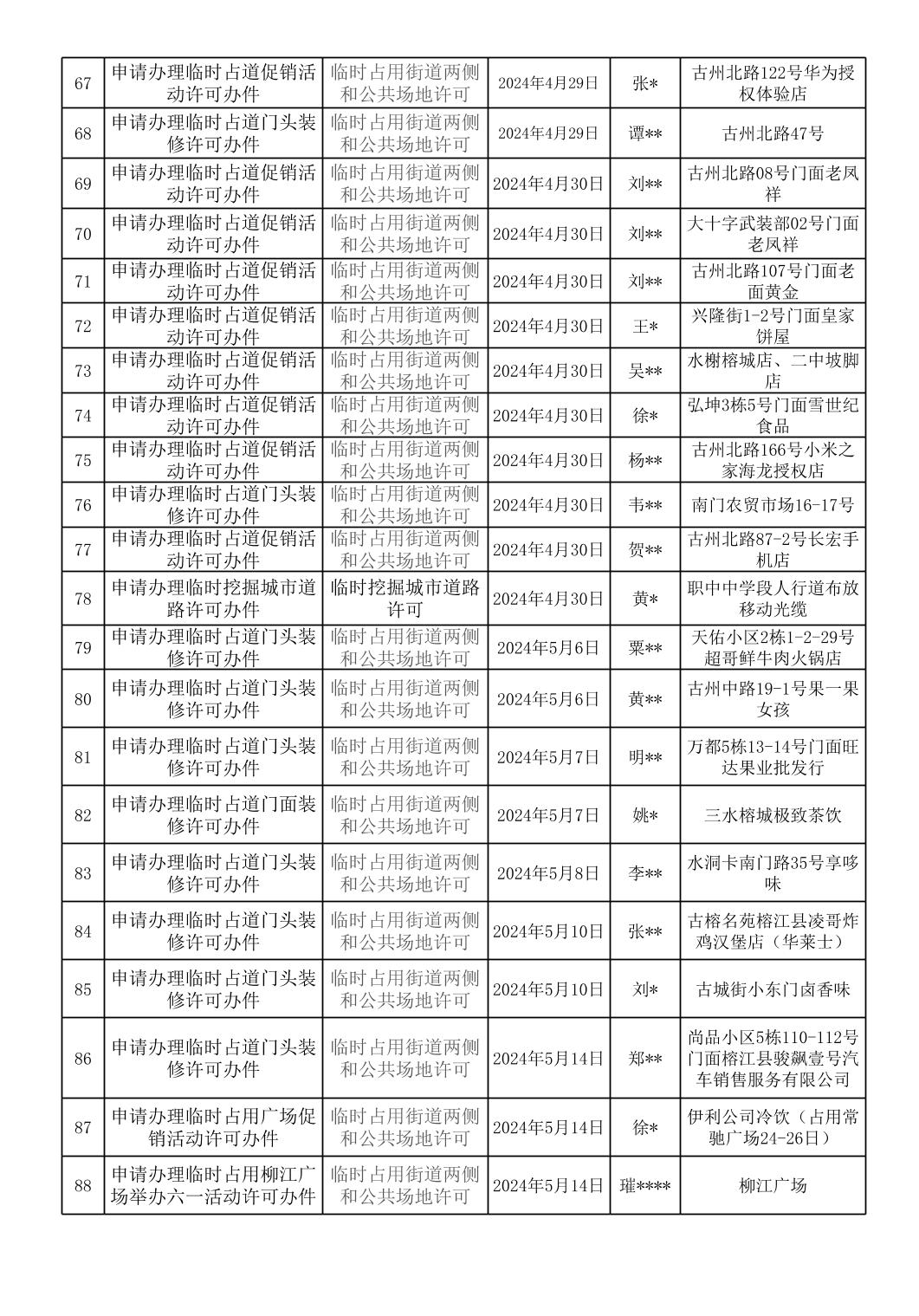 2024年榕江县市政综合执法大队行政许可结果公示(4月-6月)