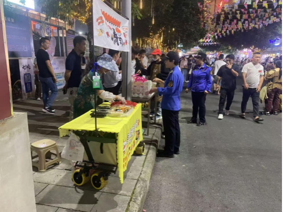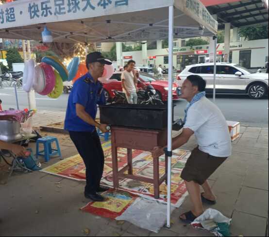 赛事期间流动摊点数量大幅增加,该局通过“前置劝导+错时巡查”模式。每天开赛前全员提前到岗,对赛场周边开展拉网式巡逻,在巡查过程中,发现摊位遮阳伞被风吹歪,就找绳子帮忙固定;遇到摊主忙着招呼客人没时间收摊,便主动帮忙把桌椅归位。看到卖冰粉的摊主不小心打翻糖浆,执法队员立即取来清洁工具,和摊主一起把地面擦拭干净,“这样既不影响行人走路,也不会让您的摊位显得脏乱,生意也能更好。”执法不是冷冰冰的管理,而是带着温度的服务,一次次耐心引导、一件件务实举措,让商户感受到执法的善意,也让“村超”的烟火气在有序中更显旺盛,为这场全民赛事增添了更多暖心底色。截至目前,共劝离流动摊贩370余人次,规范占道经营110余次。